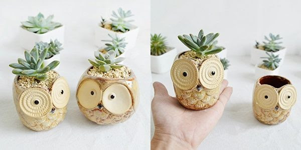 Owl Succulent Planters: These small owls have huge personality. Although the size is best suited for small succulents, each one does include a drainage hole to accommodate any similarly sized plants.