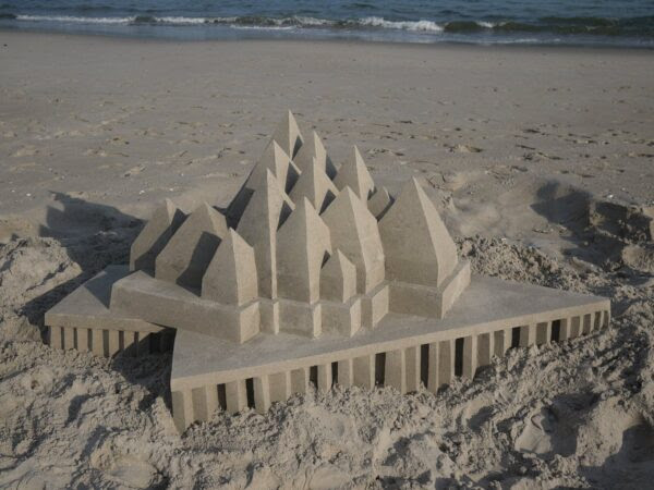 The color and texture of sand makes it a brilliant material for sculptures inspired by Brutalism, a movement that always emphasized concrete construction.