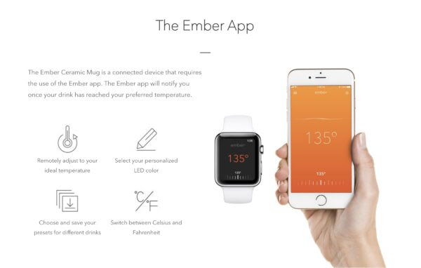 The smartphone controlled Ember coffee mug allows you to remotely set the temperature of your favourite beverage to your precise needs. It can keep the temperature-anywhere between 120°F (49°C) to 145°F (63°C) for up to one hour without the charging coaster that comes with it or indefinitely if you keep it on the coaster.