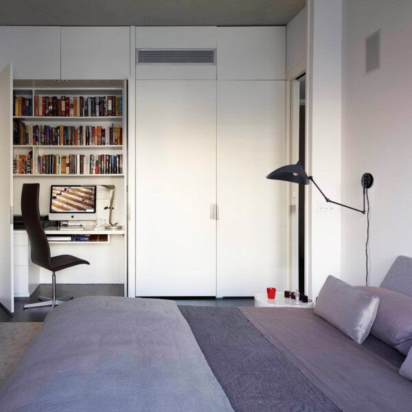 Minimalist Rectangular Swing Arm LED Wall Lamp: A flat folding modern swing arm wall lamp is a great space saving option for extra small spaces, or where a lamp is only occasionally required.